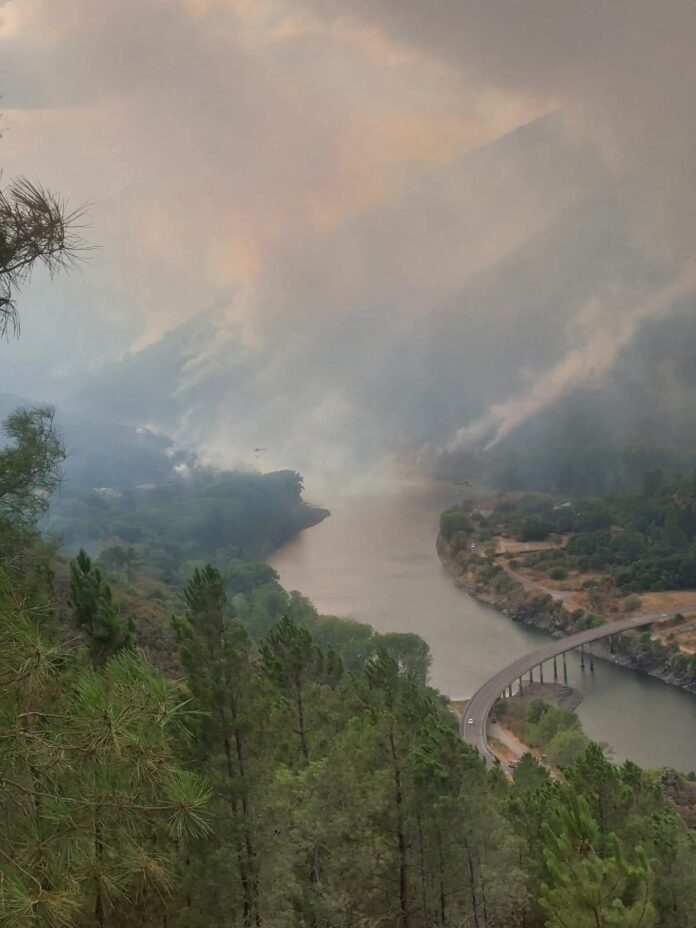 O incendio orixinado o luns 25 na Pobra do Brollón, e que pasou ao Concello de Quiroga nun avance vertixinoso e temible pola Labrada –saltando incluso a N-120 e o río Lor por varios puntos avanzando cara a localidade de Covas– achegábase esta tarde a Transmonte, na parroquia de Vilachá.
