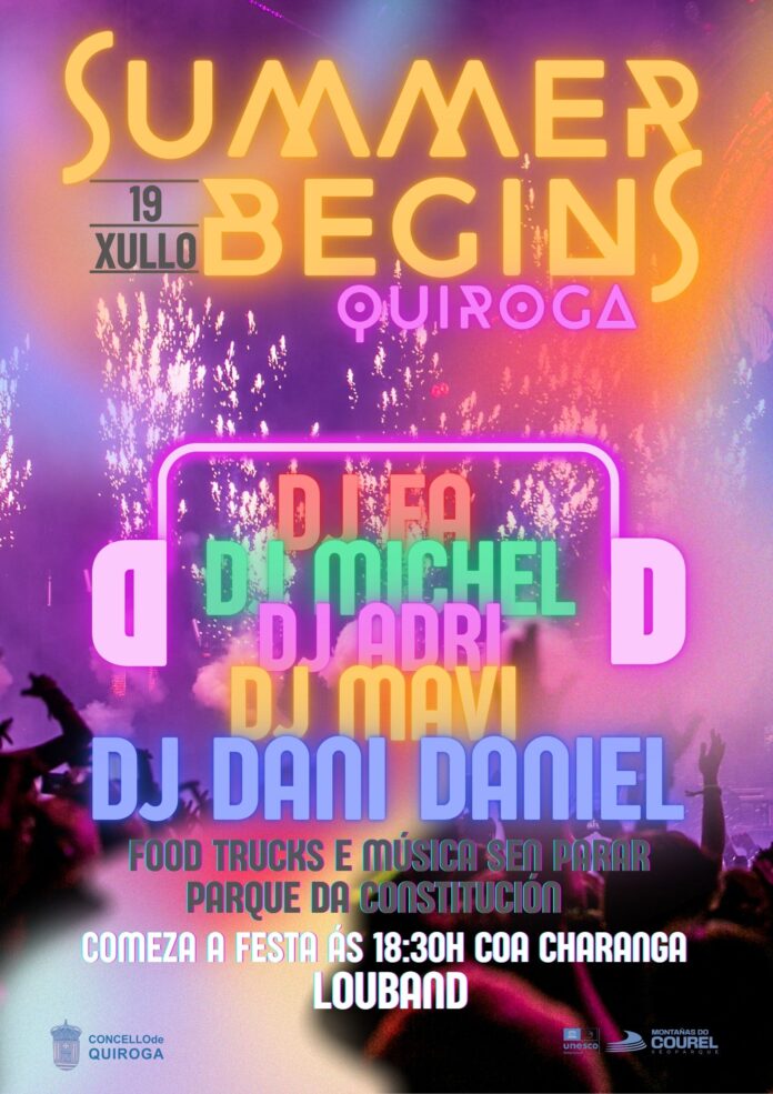 A data escollida para esta primeira festa que ten intención de continuar no tempo e marcar unha data no calendario como inicio do verán, é o sábado 19 de xullo. A Summer Begins Quiroga nace para cubrir as peticións da xuventude local de contar cun evento propio para ela dentro da programación do verán.