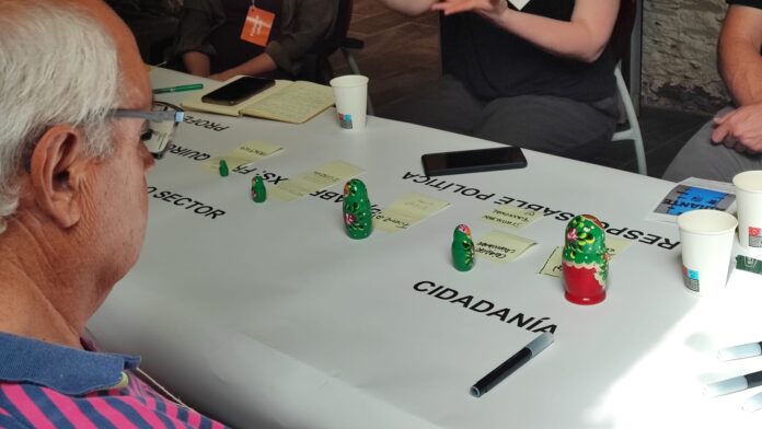 “Cultura é o que facemos en común”, dicía José Mújica e iso era o piar deste parnaso. Ocupando o espazo xunto ás persoas, palabras. E as palabreiras sobre o mapa de Domingo Fontán, as palabras sobre o territorio. Persoa, información, verticalidade, folclore, resistir, dereitos, galego, acceso, escoita, atención, experiencia, credibilidade,…