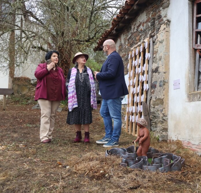 O vicepresidente da Deputación de Lugo, Efrén Castro, acompañado da xerente da Rede Museística Provincial de Lugo, Encarna Lago, e da artista Violeta Bernardo, presentaron este luns no Museo Pazo de Tor a peza escultórica “Perdida no labirinto”, integrada dentro do proxecto Soterradas. Coa peza instalada e Tor, son tres as obras de Violeta Bernardo nos fondos da Rede Museística Provincial.