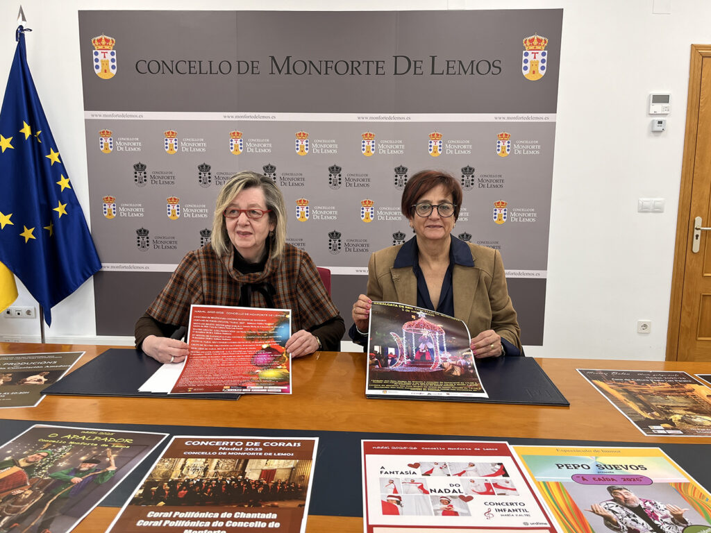 A Tenente de Alcalde do Concello de Monforte, Gloria Prada, e a Concelleira de Cultura, Marina Doutón, deron a coñecer o Programa de Actividades para este Nadal 2025-2026. A programación comeza este venres co acendido das Luces de Nadal a cargo do Alcalde, José Tomé, que premerá o interruptor da iluminación festiva ás 18.30 horas xunto á figura da árbore de más de 20 metros de altura situada na rúa peonil do Cardeal. O dispositivo ornamental desde ano estenderase por 67 rúas do municipio con 265 arcos, 7 mensaxes de ‘Bo Nadal’ nas entradas da cidade e 1,2 millóns de luces LED, cun orzamento total de 57.000€. O alumeado navideño funcionará todos os días, desde o venres 5 de decembro, en horario de 18.30 a 02.00 horas e apagarase o martes 6 de xaneiro, Día de Reis.