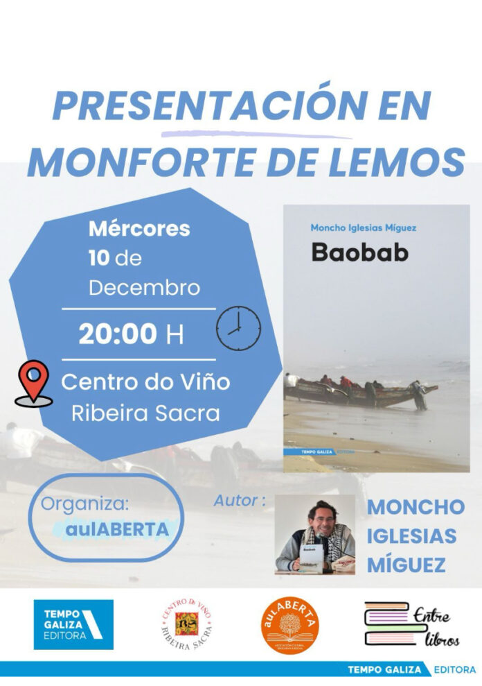 Este mércores, día 10 de decembro, ás 20:00h no Salón de Actos do Centro do viño da Ribeira Sacra preséntase o do libro Baobab de Moncho Iglesias Míguez. A cita aberta ás persoas interesadas está organizada por AulAberta.