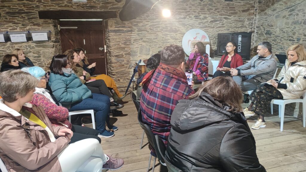 Dentro dos moitos proxectos cos que colabora a Rede, desde Sacra Experience; Carlota contou como traballa a arte con persoas con discapacidade e como converteu un lugar residencial na Ribeira Sacra en centro de formación para cohabitar a creación, traballando coa naturaleza. “Ribeira sacra non se está habitando estase colonizando e hai que habitar espazos e comunidades”, afirma Carlota Pérez e cóllelle o relevo Paula Cabaleiro co proxecto de Estudo Aberto e o Reencontro e repasa o camiño recorrido da man da Rede para democratizar os procesos creativos e aterrizalos no territorio, “a Rede como referente de prácticas feministas puxo o foco nas mulleres artistas, visibilizounos e ofreceunos acubillo, estar na Rede é estar na casa”. Iso repetirían algunhas das mestras participantes en Cousas Nosas, “a Rede é a miña casa”. Zinthia Palomino, xornalista e escritora, repasa a súa experiencia con Hackeando a Rede e Cartografía de Acollida, mapeando a cidade de Lugo desde as necesidades das personas migradas, reflexando os espazos nos que foron ben tratadas. Deseguido camiñaremos por aí neste Día das Persoas Migrantes.