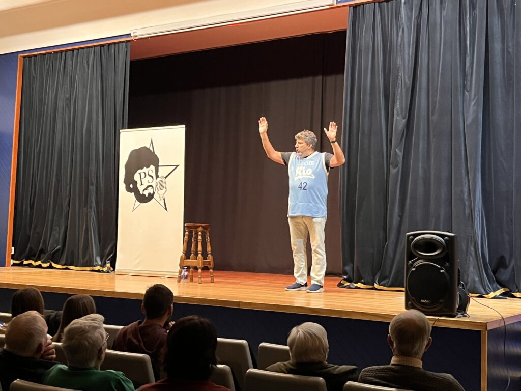 Se na rúa Cardeal a protagonista era a música, na Casa da Cultura Lois Pereiro o tema de atracción para o público foi o humor. Concretamente un espectáculo do cómico e actor Pepo Suevos que encheu o recinto e fixo rir moito a todas e todos as/os presentes.