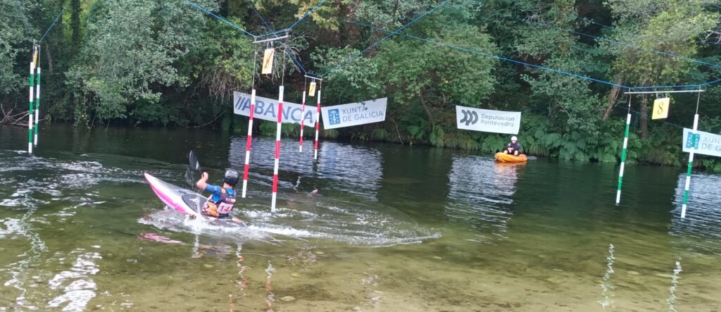 Xoel Fernández facendo o percorrido do río Tea no ‘Campionato Galego de Promoción Slalom 2025’. Foto: XMF.