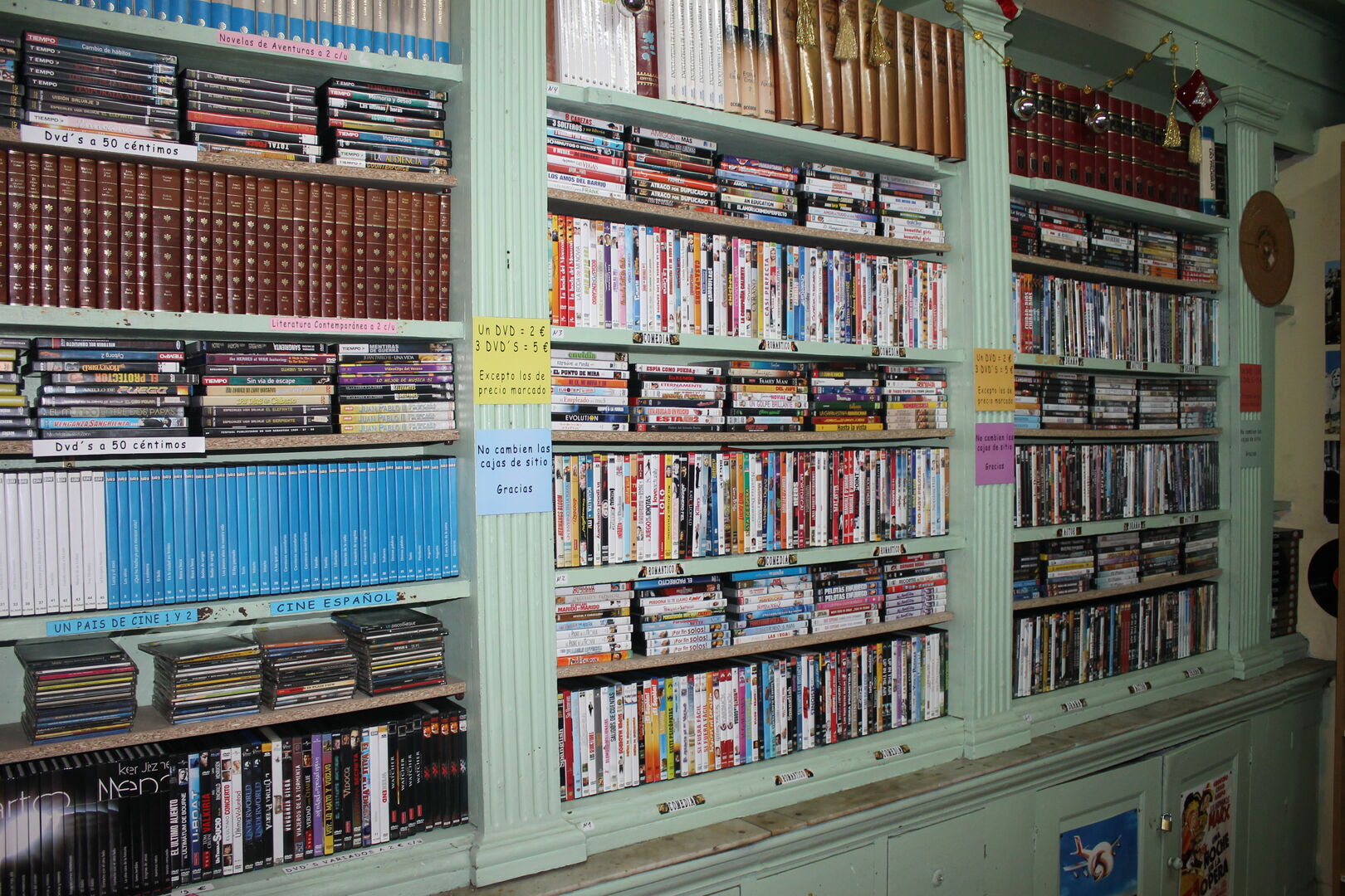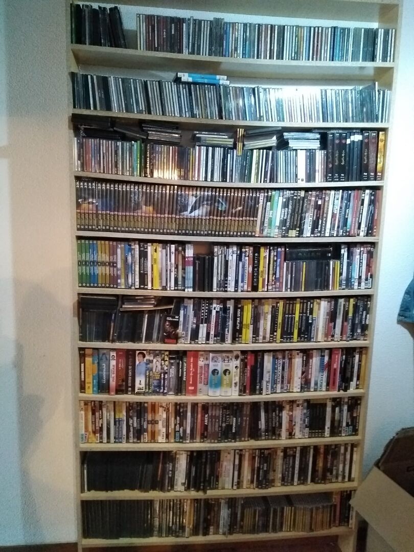 Si, teño case todo inventariado. Por dicirche algúns datos, terei uns 5.000 DVD rexistrados, uns 10.000 libros, uns 2.500 CDs, casettes e vinilos… en total chegarei a uns 20.000 artículos.