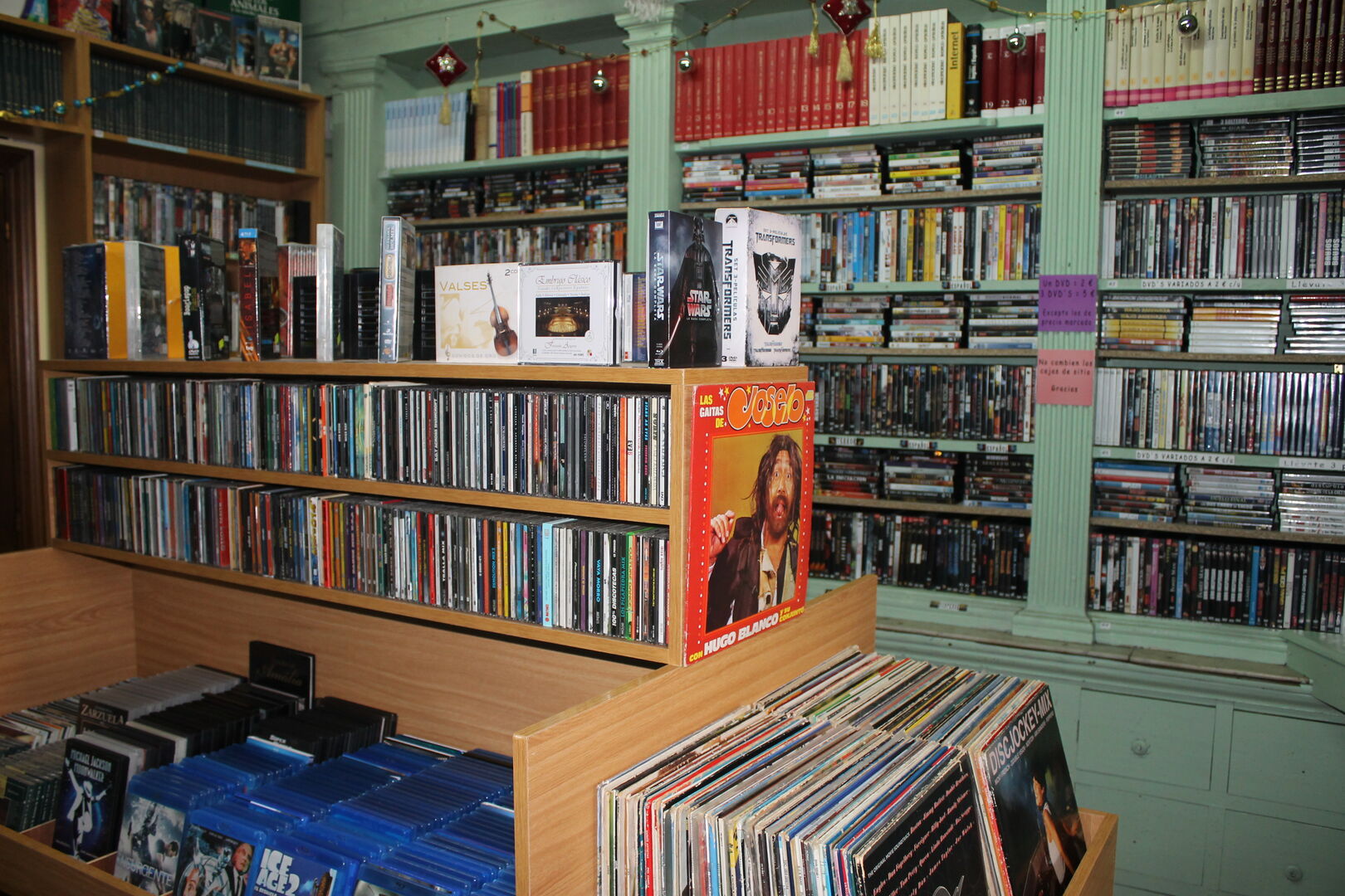 Libros, cómics, música -CD, vinilo, cassettes-, películas -DVD, Blu-ray- e tamén estou abrindo o campo a xogos, figuras e coleccionismo.
