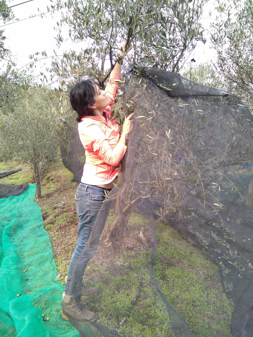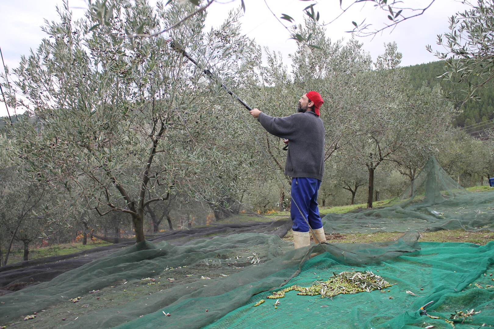 Si, chamámoslle así ao feito de ripar as olivas das polas para collelas despois na rede. Este labor complementa o da vareadora.