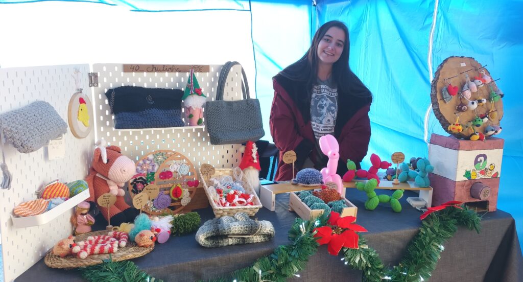 Coñecemos a Antía de la Fuente, a protagonista desta entrevista, nun dos postos que había no Mercado de Nadal que organizou o pasado mes de xaneiro, e antes de Reis, o Concello de Pantón. Alí estaba facendo gancho e vendendo amigurumis e outras cousas que confecciona con la como, por exemplo, chaveiros, moedeiros e bolsos.