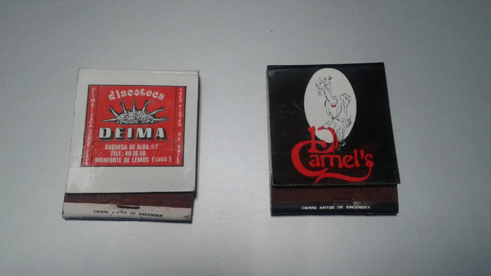 E nesta particular rebusca cheguei a eses obxectos que che lembran as noites de marcha. Para non dar moito a brasa quedo cunhas reliquias da noite quiroguesa, trivesa e monfortina, daqueles anos dourados nos que se saía como se non houbese un mañá, había xente en todos os locais, non había medo ningún ao roce nin a que che tusiran na cara e se quedabas quedabas, non había whatsapp para cambiar de plan e poñer escusas. Aquí podedes ver unha entrada da Discoteca Paneque da Pobra de Trives, creo que do 1995, pegatinas das discotecas Orinoco, La Clave e N-120 de Quiroga -grandes noites, Dior Mío-, e dúas caixas de mixtos das discotecas Deima e Camel’s de Monforte. Neste apartado hai algunha doazón, detalles dos DJs Míchel e Rafa.