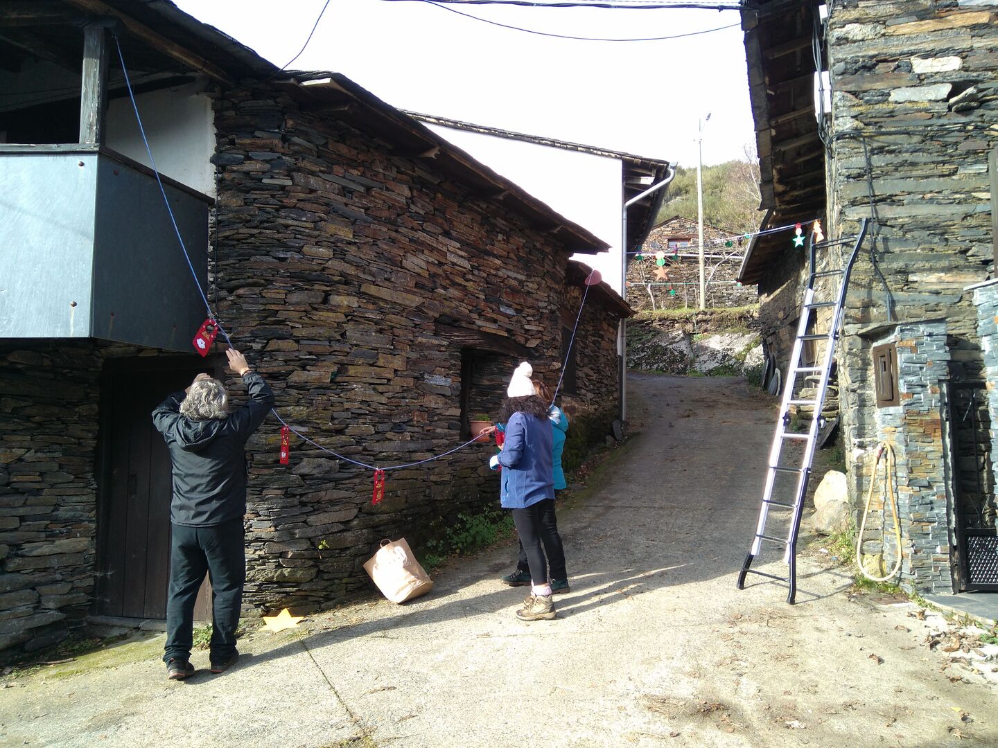 “Nada que ver con Vigo nin ganas”, dinnos uns veciños e veciñas que están rematando de engalanar esta aldea quiroguesa no comezo da ponte da Constitución. A aldea ten practicamente todas as casas rehabilitadas e en fins de semana, pontes e vacacións énchese de xente.