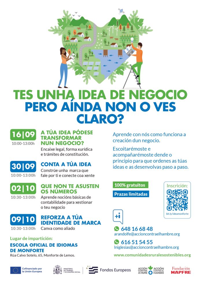 Este ciclo de talleres enmárcase no proxecto Comunidades de Emprego e Emprendemento rural sostible, financiado polo Fondo Social Europeo Plus (FSE+) e a Fundación MAPFRE, co obxectivo de impulsar o talento emprendedor e apoiar a creación de proxectos viables no medio rural.