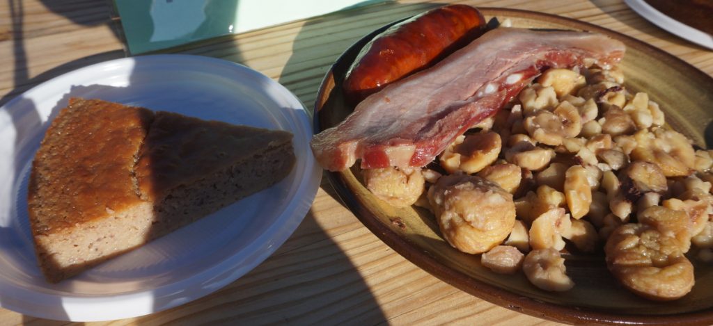 13:15 h. Degustación do Menú do Pisador a un prezo de 15 € e composto de castaña cocida, chourizo, panceta e torta de castaña.