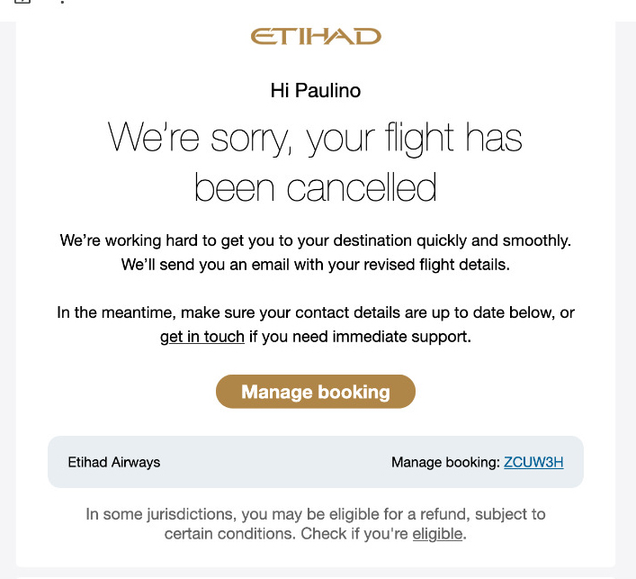 Estou molesto coa embaixada e coas compañías aéreas á hora de sacar á xente de alí. As guerras son un negocio espectacular e o sufrimento humano importa moi pouco. Etihad Airways, a compañía coa que voei de inicio e despois me cancelou o voo acaba de enviarme un correo en inglés a ver se cumpría as condicións para a devolución…como que? Teredes que solucionarme vós, que condicións teño que cumprir eu?