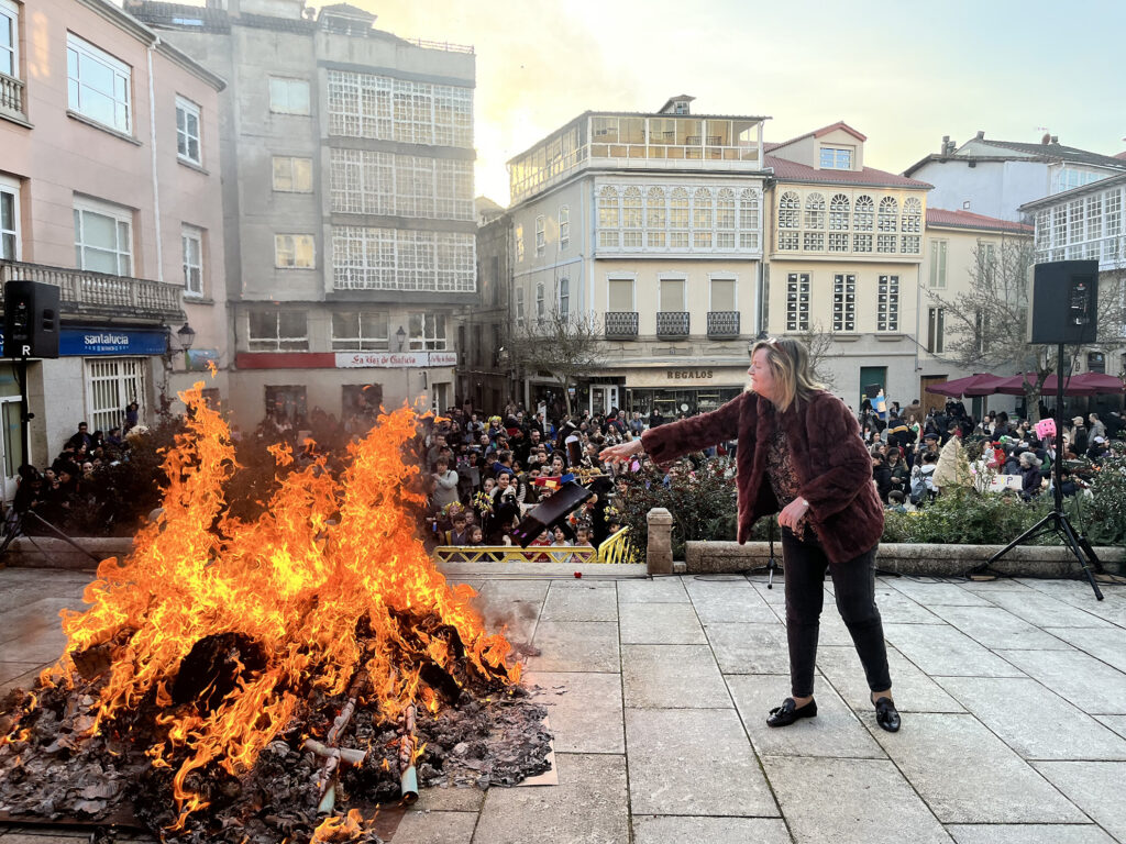 Nas convocatorias de centros de ensino e individuais, todos os compadres/comadres inscritos concentraranse na Praza de España ás 17.30 horas. Despois de estar un tempo de exposición todos os participantes con ambiente festeiro e música, procederase a dar lectura dos premios –Concelleira de Cultura– e á queima das creacións na fogueira segundo a vontade de cada quen. Na convocatoria de parroquias, barrios e rúas do Concello, os compadres/comadres inscritos colocaranse nos lugares elixidos polos participantes dende primeira hora da mañá. O xurado visitaraos ata as 17.00 horas da tarde e lerá o resultado ao mesmo tempo que o da convocatoria de centros de ensino e individuais ao remate da concentración na Praza de España e antes da queima.